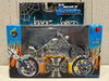 Cruise into custom culture with the Muscle Machines Jesse James West Coast Choppers CFL Rigid - SONS OF ANARCHY - JJ03-18-18 in 1:18 scale. This die cast motorcycle showcases Jesse James’ signature craftsmanship with a sleek silver finish, rigid frame, and bold detailing that captures the spirit of West Coast Choppers. Manufactured in 2003 by Funline Merchandise Co., this limited edition collectible is sealed and ready to display. Whether you're a diecast enthusiast or a fan of outlaw engineering, this piece delivers attitude in miniature.